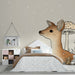 Muuta vauvasi tila tällä vauvanhuoneen tapetilla, joka esittää uteliasta pientä peuraa ympäröivänä sieniä ja herkkiä kasveja. Tämä rauhallinen ja luonnollinen suunnittelu kutsuu unelmoimaan ja tutkimaan, luoden lempeän ja kutsuvan ympäristön.
