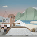 Lempeät sinisen ja vaaleanpunaisen sävyt yhdistettynä mahtaviin vuorimaisemiin taustalla luovat rauhallisen ja kutsuvan tunnelman. Jokainen graafinen elementti, pilvien herkät luonnokset maiseman yksityiskohtiin, on huolellisesti suunniteltu herättämään nuorten seikkailijoiden uteliaisuus.
