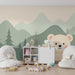 Uudelleenmuotoile vauvasi huone erittäin söpöksi paikaksi tämän viehättävän lastenhuoneen tapetin avulla, jossa on suloinen nalle istumassa vuoriston keskellä. Lempeät vihreät ja beige sävyt luovat rauhoittavan tunnelman, täydellisen unille ja haaveilulle.