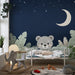 Lastenhuoneen tapetti | Utelias nalle tähtien alla