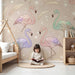 Muuta vauvasi huone trooppiseksi paratiisiksi tällä värikkäillä flamingoilla koristetulla vauvan tapetilla. Nämä tyylikkäät olennot, pehmeissä vaaleanpunaisissa, sinisissä ja vihreissä sävyissä, liikkuvat sulavasti herkkien höyhenten ja kimaltelevien tähtien keskellä, luoden satumaisen rauhoittavan tunnelman.