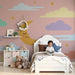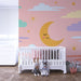 Muuta vauvasi huone todelliseksi pieneksi pesäksi tällä vauvan tapetilla, jossa on pehmeät pastellisävyt. Rauhoittava taivas, jossa on värikkäitä pilviä, kimaltelevia tähtiä ja hymyilevä kuu, luo lämpimän ja lohduttavan ilmapiirin, joka on ihanteellinen rauhallisiin öihin.
