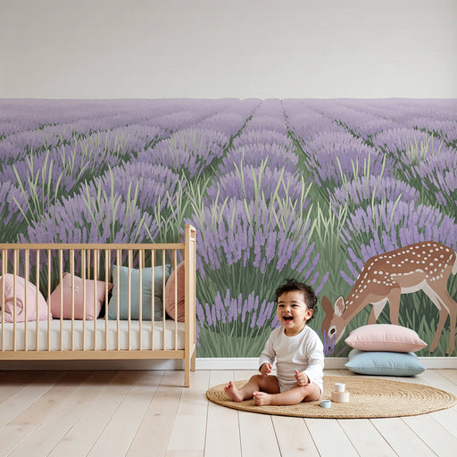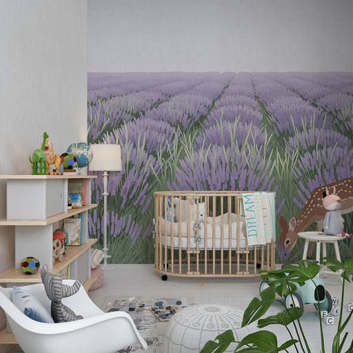 KidsWallMuuta vauvasi huone kodikkaaksi tilaksi tällä vauvan tapetilla, joka esittää upeaa laventelipeltoa. Suloisen peuran, hienosti piirretyn, ruokailee ...