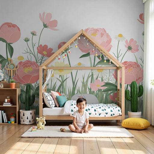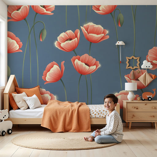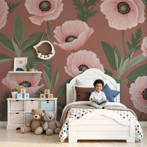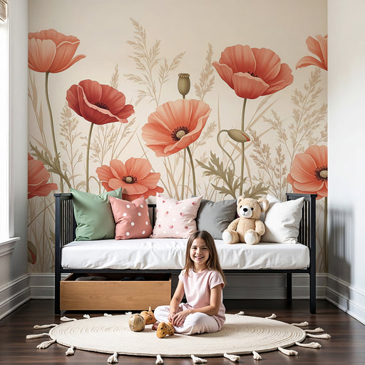 KidsWallTutustu keväisen puutarhan kauneuteen tämän upean lastenhuoneen tapetin kanssa, jossa on kauniita unikoita. Nämä herkät kukat, maalattu vaaleanpuna...