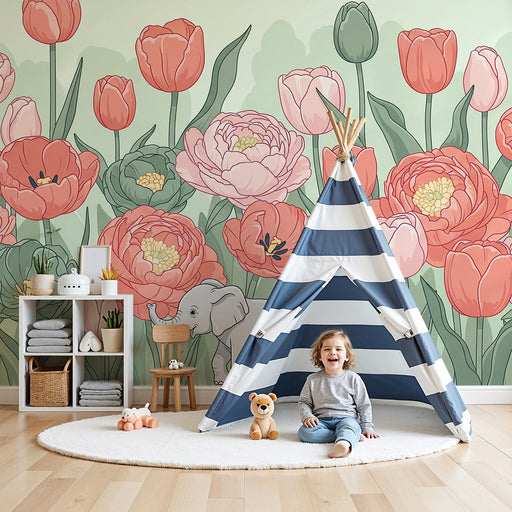 KidsWallMuuta vauvasi huone satumaiseksi puutarhaksi tällä vauvan tapetilla. Tulppaanit, pehmeän persikan ja vihreän sävyissä, kukkivat kauniisti rauhoitta...