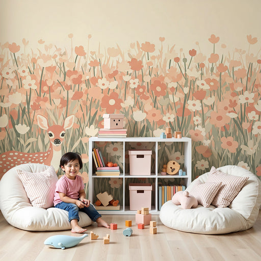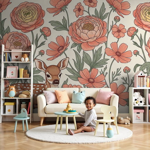 Näytä kaikki tiedotLastenhuoneen tapetti | Peurat ja unikot kukissa