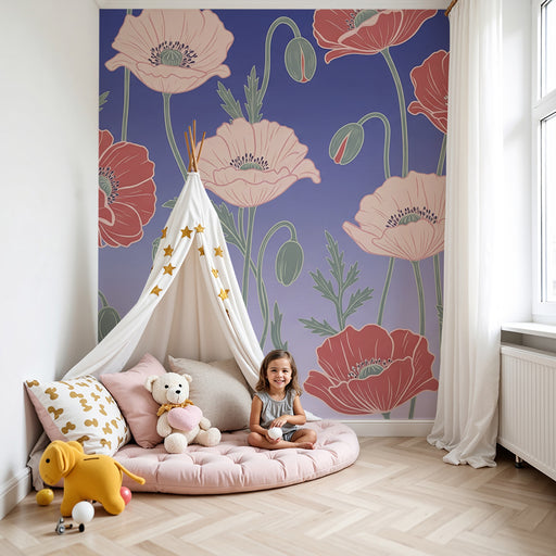 Näytä kaikki tiedotLastenhuoneen tapetti | Hellävarainen unikkojen kenttä