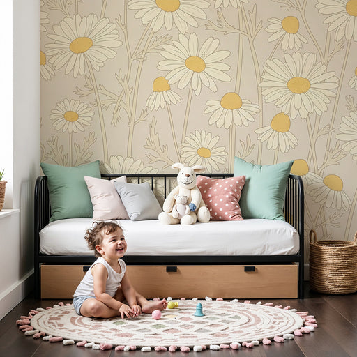 KidsWallLisää vauvan huoneeseen luonnetta ja pehmeyttä tällä kukkakuvioisella lastenhuoneen tapetilla. Herkät, kermaiset päivänkakkarat ulottuvat arvokkaas...