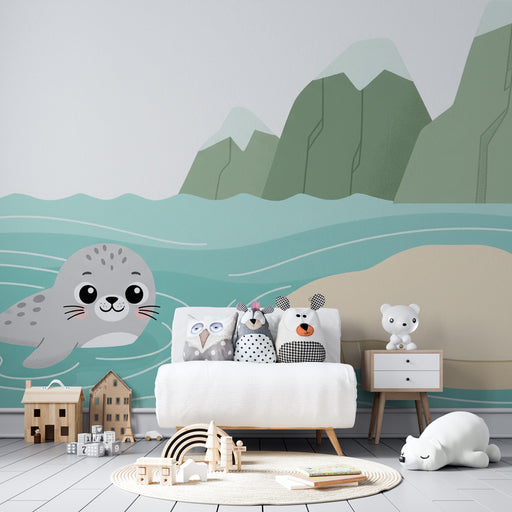 Näytä kaikki tiedotLastenhuoneen tapetti | Söpö hylje jäätiköllä
