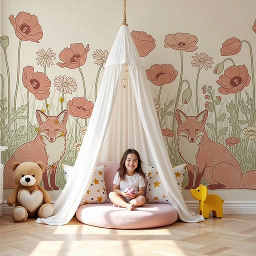Näytä kaikki tiedotLastenhuoneen tapetti | Ketut ja villikukat
