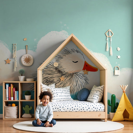 KidsWallLuo rauhoittava pesä vauvasi huoneeseen tällä herkällä vauvan tapetilla, jossa on suloinen pieni nukkuva ankka. Oranssin ja sinisen pehmeät sävyt, ...