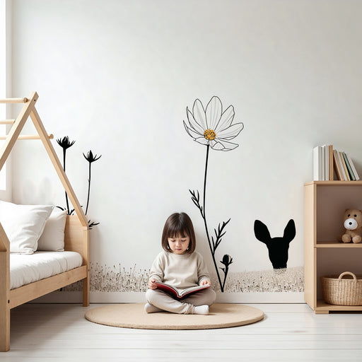 KidsWallTuo vauvasi huoneeseen ripaus taikuutta ja hellyyttä tällä vauvan tapetilla, jossa on suloinen peura ihastelemassa kukkasadetta. Tämä lumoava sisus...