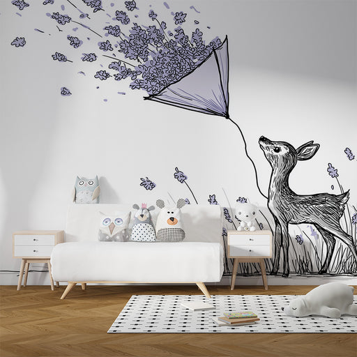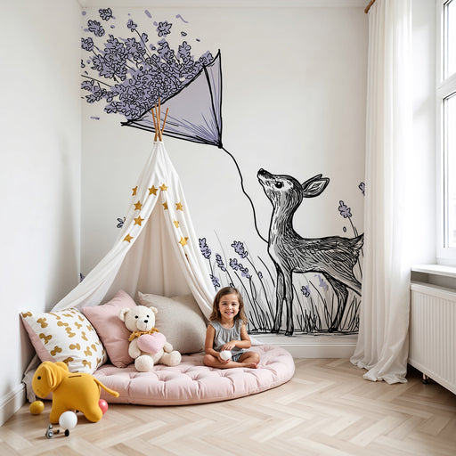 Näytä kaikki tiedotLastenhuoneen tapetti | Peura kukilla ja keveydellä