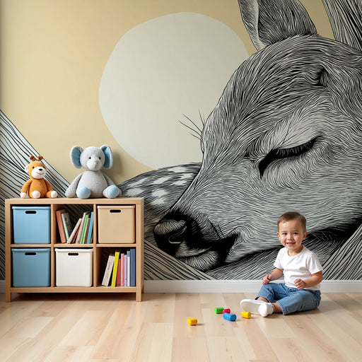 KidsWallLuo lempeä ja rauhallinen tunnelma vauvasi huoneeseen tällä vauvan tapetilla, jossa on suloinen, nukkuva peura. Sen hienostuneet piirteet yhdistett...