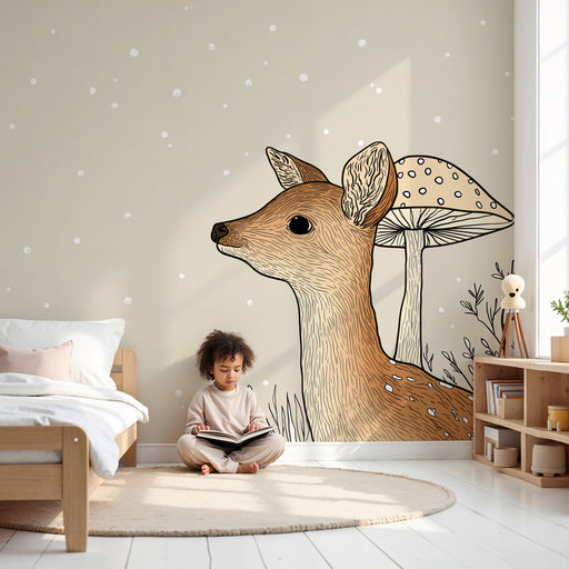 KidsWallMuuta vauvasi tila tällä vauvanhuoneen tapetilla, joka esittää uteliasta pientä peuraa ympäröivänä sieniä ja herkkiä kasveja. Tämä rauhallinen ja l...