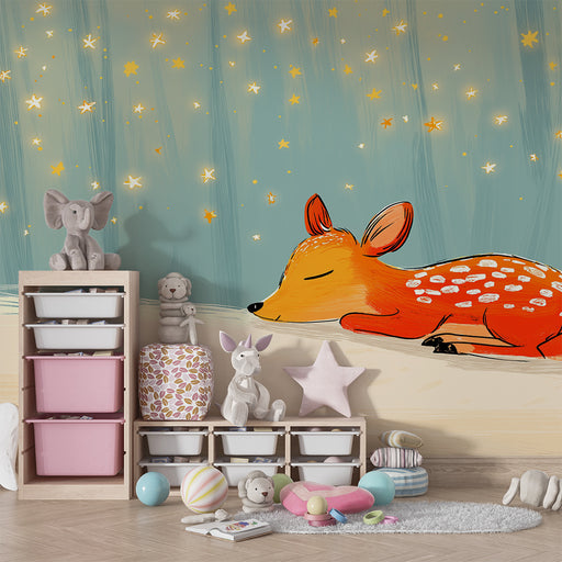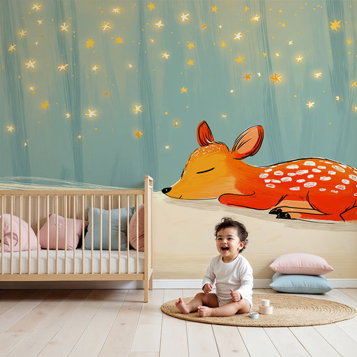 Näytä kaikki tiedotLastenhuoneen tapetti | Nukkuva hirvi tähtien alla
