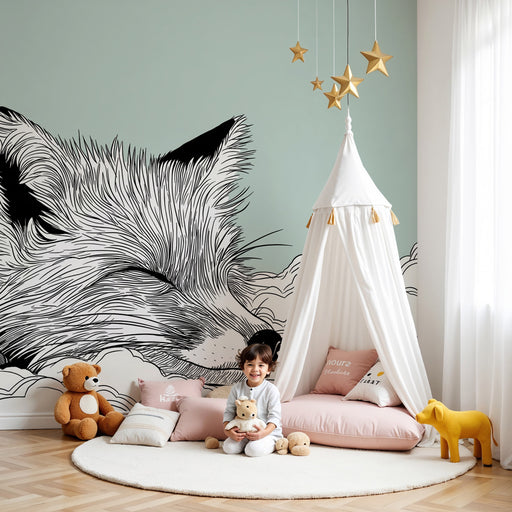 KidsWallTarjoa vauvasi huoneelle unelmien henkäys tällä vauvan tapetilla, joka esittää rauhallisesti nukkuvaa kettua pilvien päällä. Mustavalkoisella herkä...