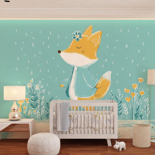 Näytä kaikki tiedotLastenhuoneen tapetti | Iloinen kettu sateessa