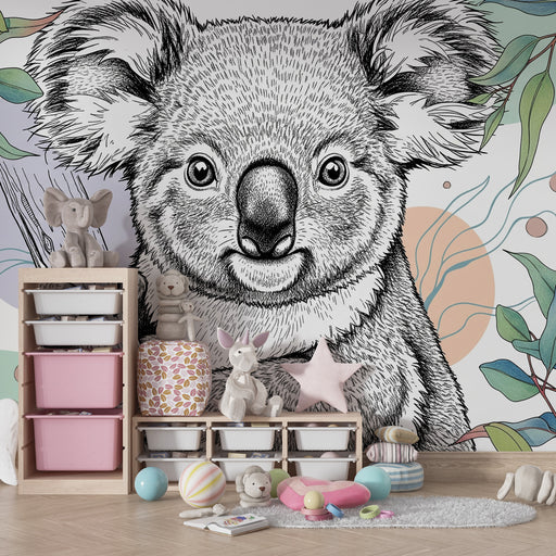 KidsWallPäivitä lapsesi huone tällä lastenhuoneen tapetilla, jossa on suloinen koala ympäröity rehevillä lehdillä. Tämä pieni pussieläin kurkistelee utelia...