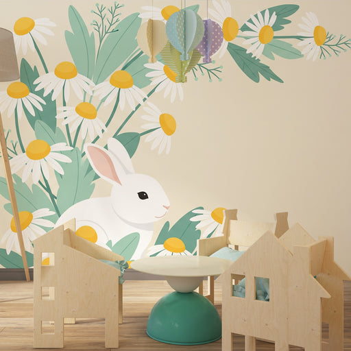 KidsWallMuuta lapsesi huone satumaiseksi puutarhaksi tällä lastenhuoneen tapetilla, jossa on suloinen valkoinen pupu ja kirkkaat keltaiset päivänkakkarat. ...