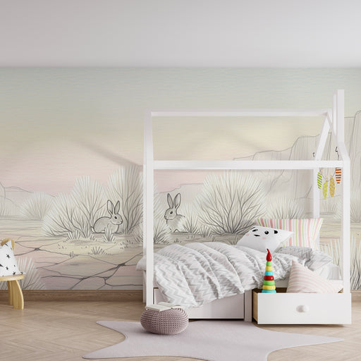 Näytä kaikki tiedotLastenhuoneen tapetti | Jänikset lempeässä ja autiomaassa