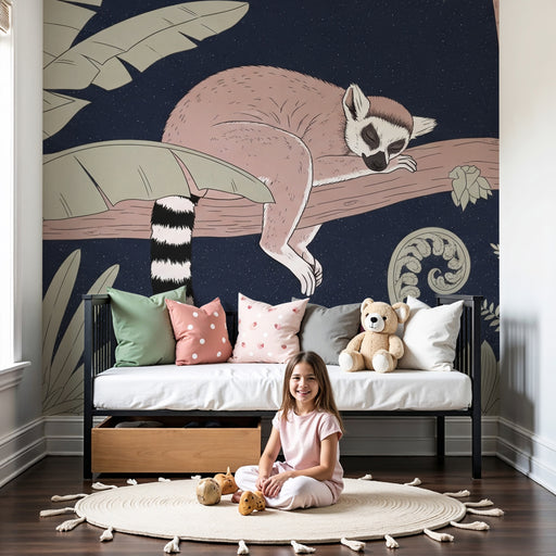 Näytä kaikki tiedotLastenhuoneen tapetti | Lemurian nukkuu viidakossa