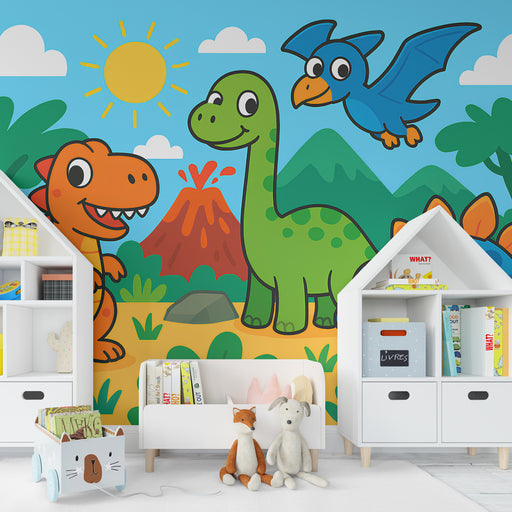Näytä kaikki tiedotLastenhuoneen tapetti | Pienet dinosaurukset ja tulivuori