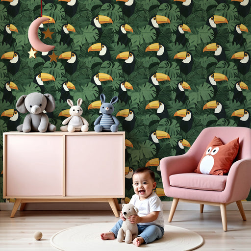 KidsWallTuo lastenhuoneeseen eksoottinen kosketus tällä lastenhuoneen tapetilla, jossa on majesteettisia tukaaneja. Nämä symboliset linnut, jotka ovat piil...