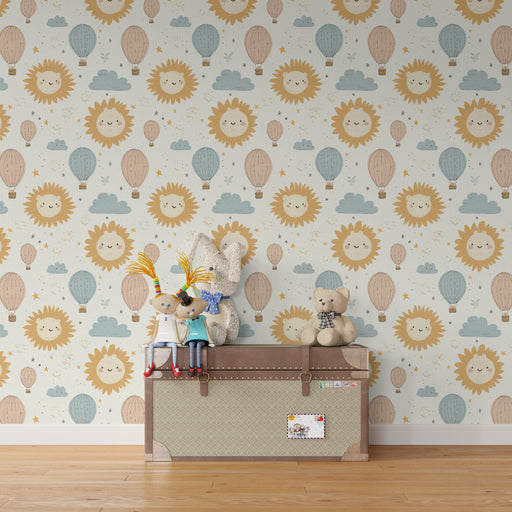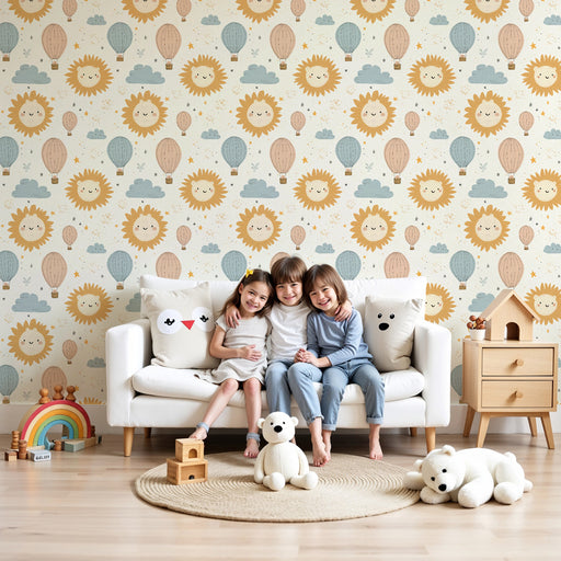 KidsWallHerätä taivaan taika lapsesi huoneessa tällä leikkisällä tapetilla. Aurinkoiset hymyt, pehmeät pilvet ja värikkäät ilmapallot luovat luovan suunnit...