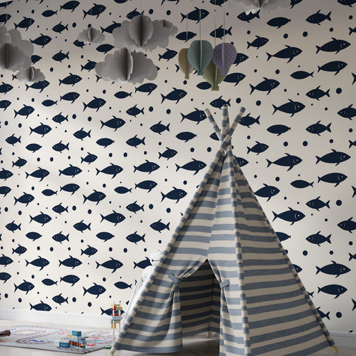 KidsWallUudista lapsesi huonetta todelliseksi akvaarioksi tämän lastenhuoneen tapetin avulla, jossa on tyylikäs kuvio stilisoituja kaloja. Syvän siniset me...