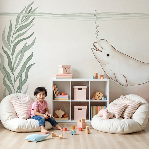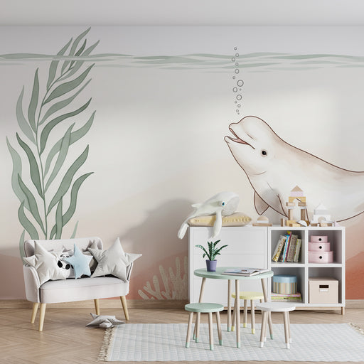 Lastenhuoneen tapetti | Rentoutuminen merenalaisen maailman kanssa belugan kanssa