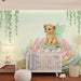 Lastenhuoneen tapetti | Pieni leijona siivillä värillisellä kukalla