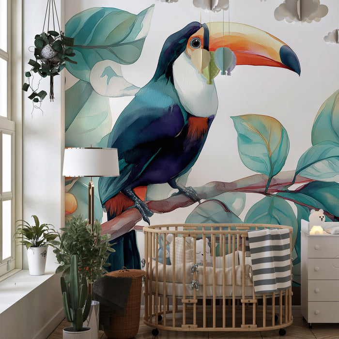 Lastenhuoneen tapetti | Värikäs tukaani ja trooppinen lehvistö