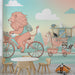 Lastenhuoneen tapetti | Leijona pyöräilee ystäviensä eläinten kanssa