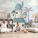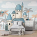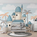 Muuta lapsesi huone lumoavaksi kuningaskunnaksi tällä lastenhuoneen tapetilla. Unelmamaailman keskellä kohoaa mahtava linna, jonka korkeat tornit on koristeltu sinisillä katoilla, ylpeänä seisoo kirkkaan taivaan alla, joka on täynnä pehmeitä pilviä. Värikkäät palmupuut lisäävät trooppista taikaa, luoden rauhallisen ja leikkisän ilmapiirin.