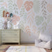 Lastenhuoneen tapetti | Vaalea lehtikuvio ja lempeä tunnelma