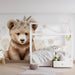 Okružen suptilnim lišćem i aquarelle mrljama, ovaj medvjedić potiče znatiželju i potiče maštu malih avanturista. Svaki detalj, od stiliziranih cvjetova do nježnih crta medvjedića, osmišljen je kako bi pružio osjećaj sigurnosti i udobnosti.