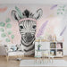 Papier de parede dječje sobe | Simpatični zebra s cvjetnom krunom