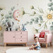 Pastelne nijanse zelene i bijele dodaju dodir svježine i lagane težine prostoriji, dok rafinirani detalji cvijeća dodaju notu prirodnog šarma. Ovaj cvjetni dekor poziva na nježnost i mir, stvarajući umirujuće okruženje za vaše malo blago.