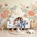 Krem pozadina ističe nježne boje cvijeća, pružajući suptilan kontrast koji osvjetljava prostoriju. Ovaj cvjetni ukras idealan je za poticanje mašte najmlađih dok im pruža miran i ugodan okoliš.