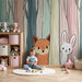Redizajnirajte sobu svog djeteta u pravu bajku s ovim tapetama za djecu koje prikazuju nestašnog lisca i znatiželjnog zeca kako se kriju iza drveća pastelnih boja. Ovaj zabavni i nježni dizajn poziva na avanturu i maštu.