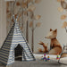 Transformirajte dječju sobu u oazu mira s ovim tapetama za djecu koje prikazuju mirnu scenu lisica u nježnoj šumi. Odrasla lisica i njezino mladunče mirno odmaraju usred lišća u nježnim tonovima i stiliziranih stabala, stvarajući toplu i ugodnu atmosferu.