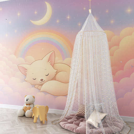 KidsWallZaronite u svijet mira s našim tapetom s sanjivim lisicom. Ovaj očaravajući dizajn prikazuje usnulu lisicu ugniježđenu među pastelnim oblacima, isp...
