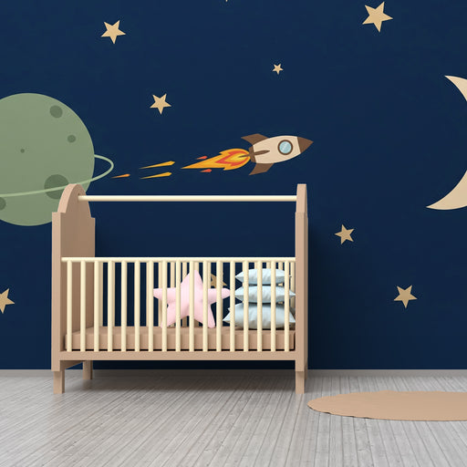 Prikaži sve detaljeKids room wallpaper | Svemirska avantura s raketom i zvijezdama