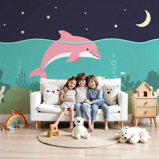 KidsWallUroneite svoje dijete u čarobni morski svijet s ovim tapetama za djecu koje prikazuju graciozne skokove delfina pod mjesecom. Morska stvorenja doda...