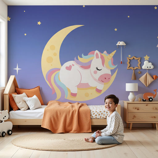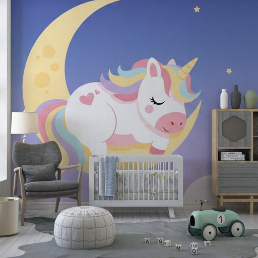 Prikaži sve detaljePapier de parede dječje sobe | Sanjivi jednorog na mjesecu crescent
