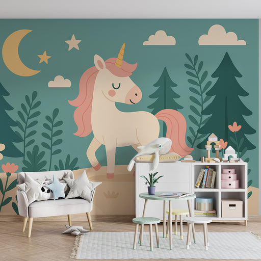 Prikaži sve detaljePapier de parede dječja soba | Čarobni jednorog pod mjesecom