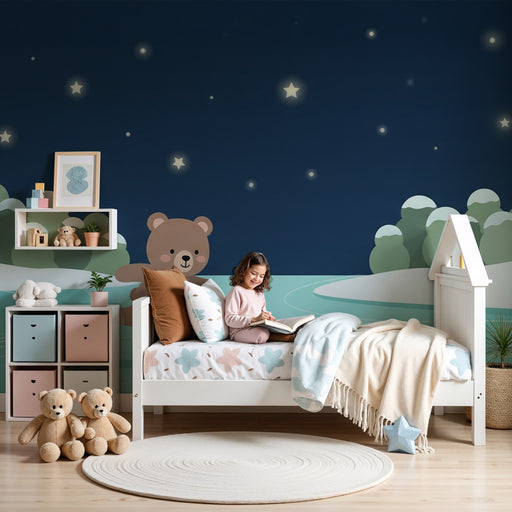 KidsWallStvorite nježan i umirujući prostor u sobi vaše bebe s ovim papirnatom za bebe koji prikazuje slatkog medvjeda na ljuljački. Pod zvjezdanim nebom, ...