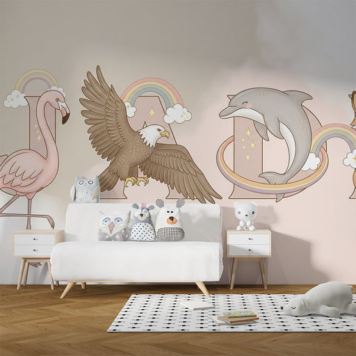 S ovom tapetom s dugom, pružite mu dekoraciju koja potiče snove i kreativnost. Kombinirajte je s namještajem u blagim tonovima i zvjezdanim dodacima kako biste stvorili skladnu atmosferu, gdje vaše dijete može svakodnevno bježati u svijet ispunjen magijom i nježnošću.