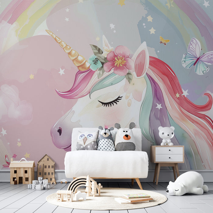 Tapeta za dječju sobu | Čarobni jednorog i pastelni leptiri